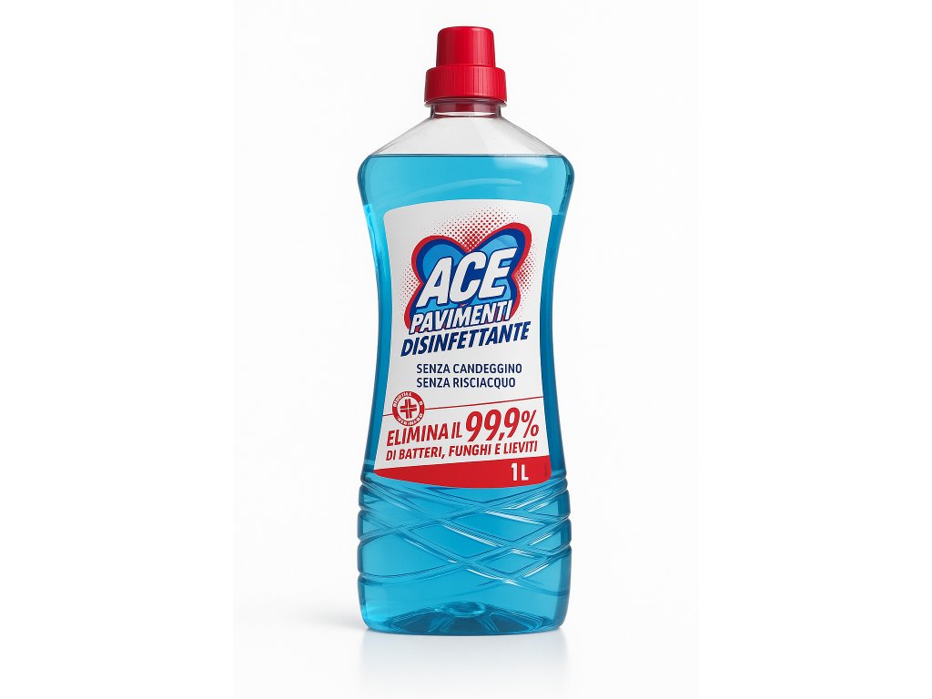 ACE Pavimenti Disinfettante je tekutý čisticí prostředek určený k hygienické dezinfekci podlah. Účinně eliminuje až 99,9 % bakterií, hub a kvasinek, čímž zajišťuje maximální čistotu a bezpečí ve vaší domácnosti. Složení bez chlóru je šetrné k povrchům i ovzduší v místnosti, takže je vhodný i pro časté používání. Produkt není nutné oplachovat a díky svěží vůni zanechává pocit dokonale čistého prostředí.