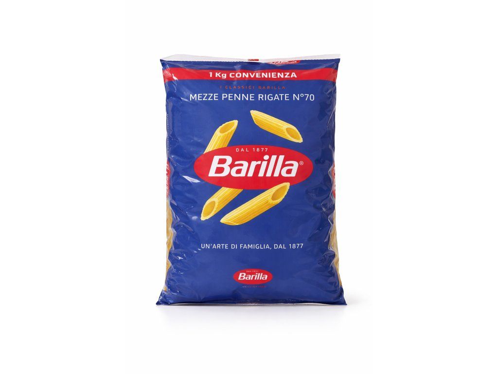 Barilla Mezze Penne Rigate n°70 jsou tradiční italské těstoviny vyrobené z kvalitní semolinové mouky z tvrdé pšenice (grano duro). Díky svému kratšímu tvaru a rýhovanému povrchu (rigate) perfektně zachytí omáčku a zvýrazní chuť každého pokrmu.