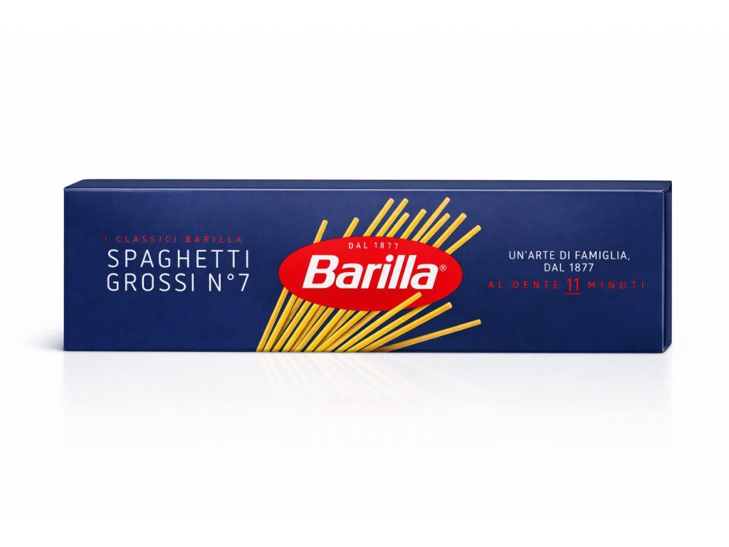 Barilla Spaghetti Grossi N°7 jsou klasické italské těstoviny vyrobené z kvalitní tvrdé pšenice. Díky většímu průměru dobře drží omáčku a jsou ideální pro sytější a výraznější recepty, jako jsou masové omáčky, carbonara nebo rajčatové omáčky.