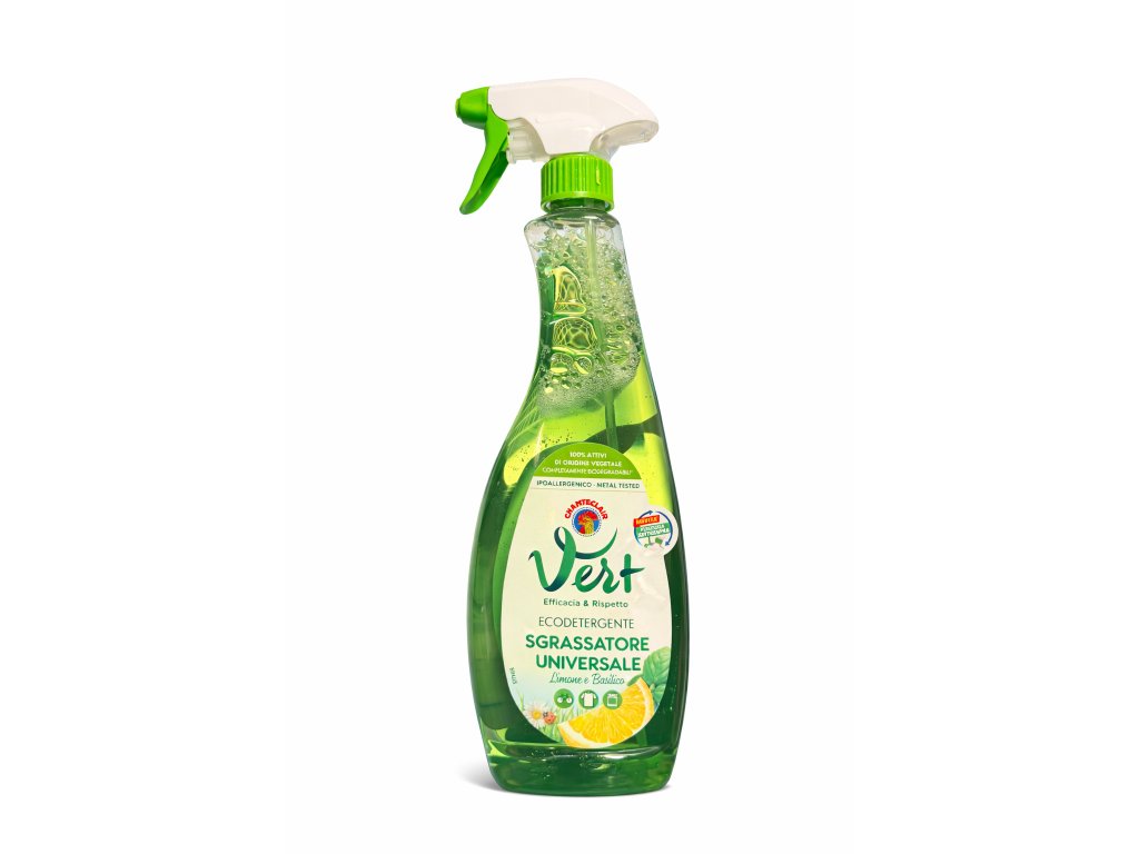 Chante Clair Vert Sgrassatore Universale je ekologický univerzální čisticí prostředek vyrobený z 100% rostlinných aktivních složek. Je vysoce účinný proti mastnotě, připáleninám a běžným nečistotám.