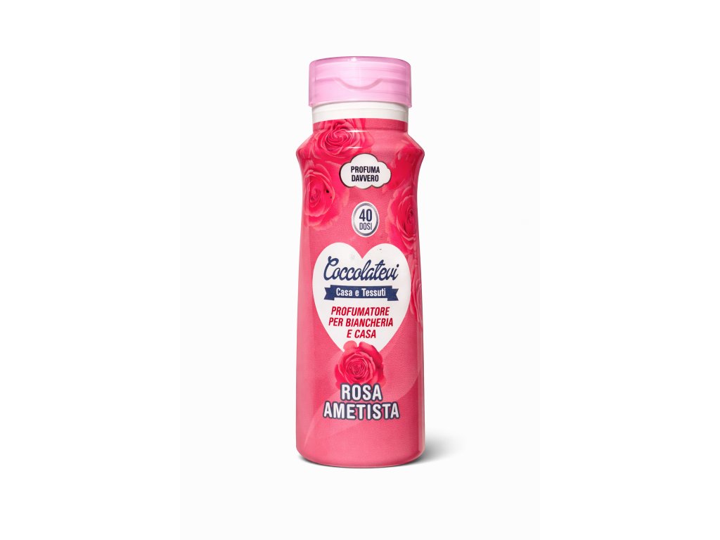 Coccolatevi Rosa Ametista 250 ml je silně parfemovaný koncentrát určený k provonění prádla a celé domácnosti. Jeho sladká a květinová vůně růží vydrží na textilu opravdu dlouho a neztrácí intenzitu ani po vysušení nebo uložení do skříně.