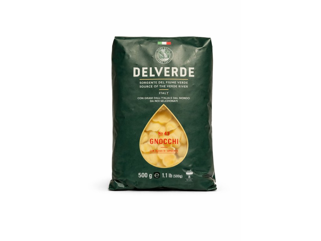Delverde Gnocchi No. 43 představují prémiové italské těstoviny vyrobené z pečlivě vybraných zrn tvrdozrnné pšenice a pramenité vody z oblasti řeky Verde. Výsledkem je těstovina s vynikající pevností, chutí a schopností ideálně držet omáčku.