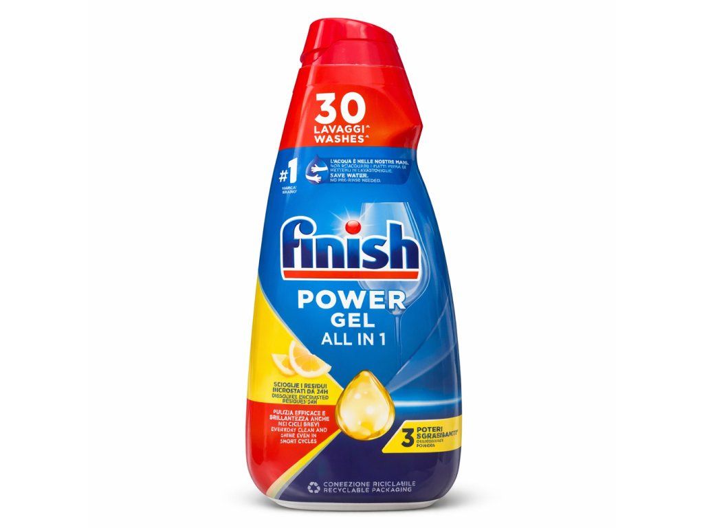 Finish Power Gel All in 1 je vysoce účinný gel do myčky nádobí, který si poradí s mastnotou, zaschlými zbytky jídla i odolnými nečistotami. Díky rychle rozpustné tekuté formě začíná působit ihned po spuštění programu.