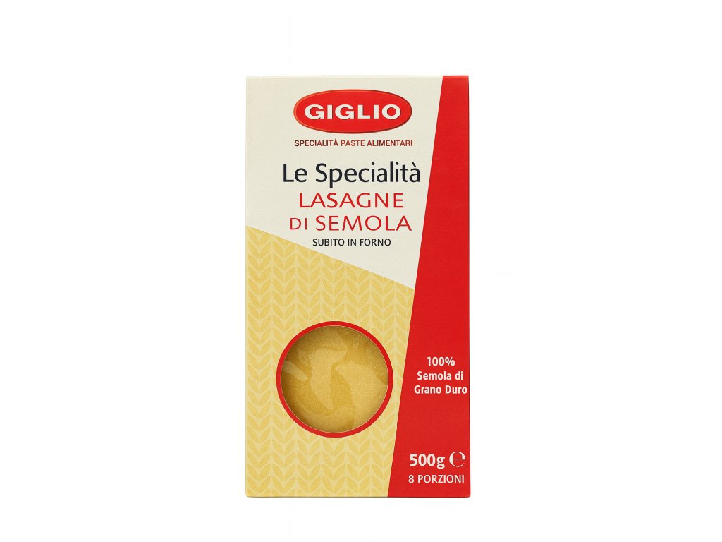 Italské těstoviny GIGLIO Lasagne di Semola představují základ pro přípravu pravých domácích lasagní. Jsou vyrobené ze 100% semoliny z tvrdé pšenice, která zaručuje pevnost a skvělou chuť. Díky své kvalitě se během pečení nerozvaří a krásně propojí s omáčkou a sýrem. Tyto lasagne není nutné předvářet, stačí je vrstvit přímo do pekáče spolu s omáčkou a zapéct. Skvěle se hodí pro klasické lasagne alla bolognese, ale i pro vegetariánské varianty. Balení 500 g vystačí na přípravu cca 8 porcí.