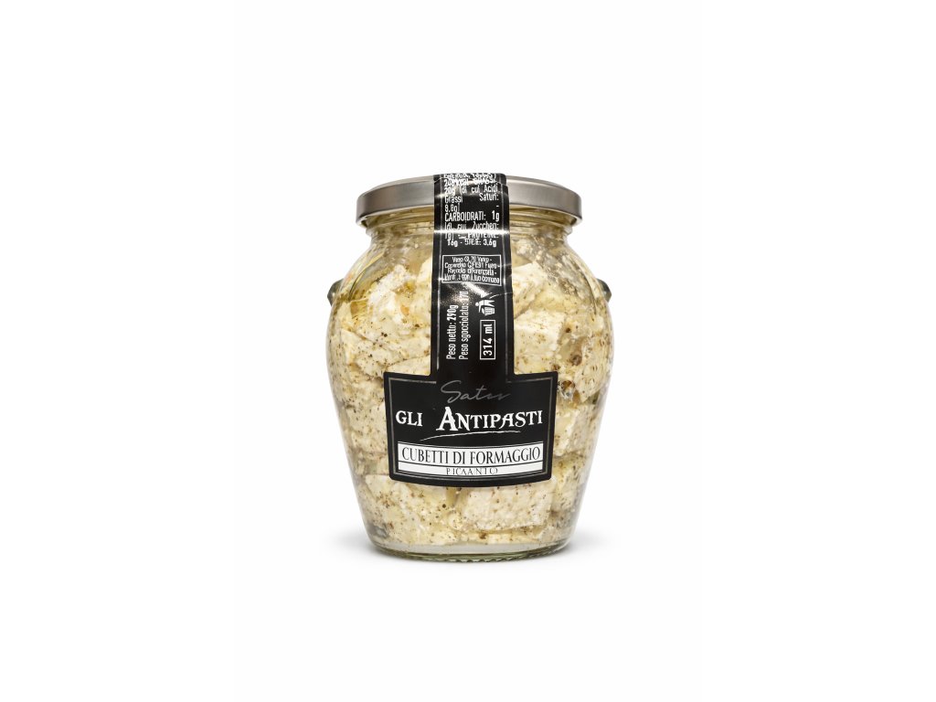 Gli Antipasti Cubetti di Formaggio Piccanti jsou výrazné sýrové kostičky naložené v kvalitním oleji, chilli a aromatických bylinkách. Díky bohaté chuti, jemné textuře a pikantnosti jsou ideální jako luxusní předkrm, ale i jako doplněk k salátům, těstovinám nebo na tapas.