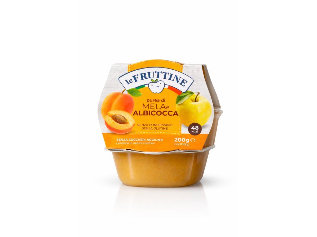 Le Fruttine ovocné pyré kombinuje sladkou chuť jablek a meruněk v jemné konzistenci, kterou si zamilují děti i dospělí. Perfektní jako rychlá svačina do práce, školy nebo na cesty.