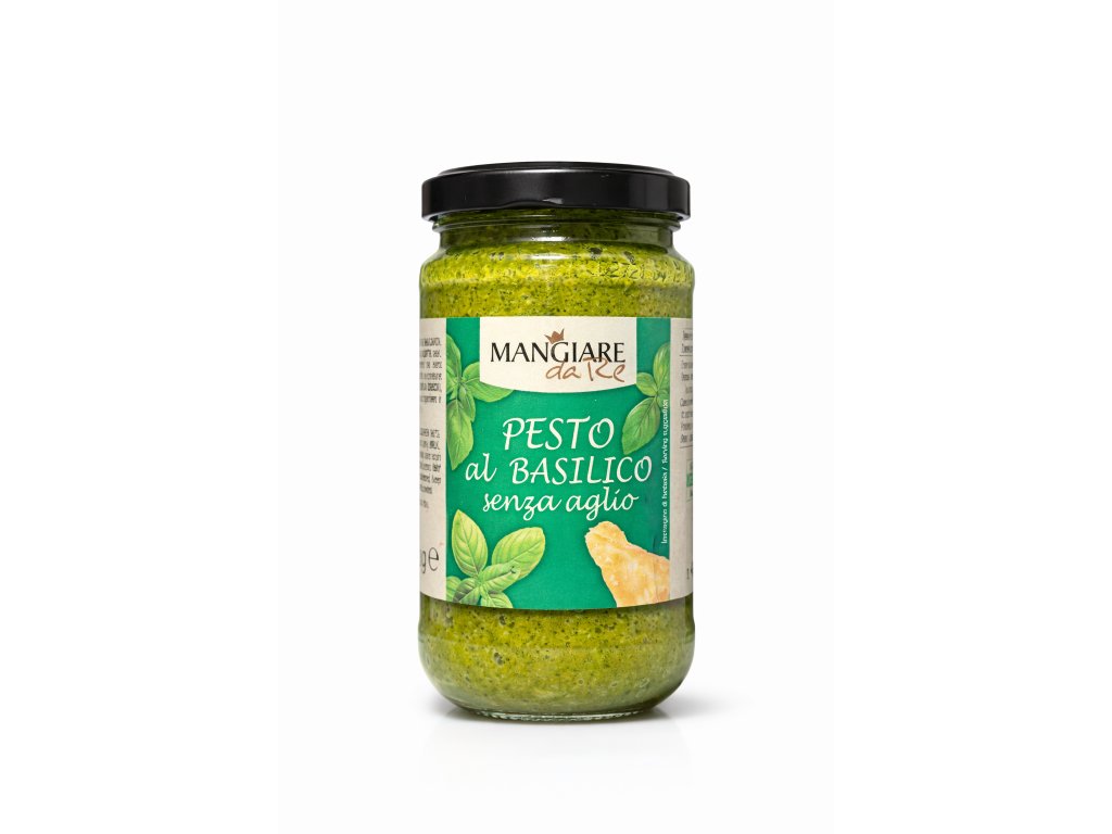 Mangiare da Re Pesto al Basilico senza aglio je klasické italské pesto připravené z kvalitní bazalky, sýra a oleje, avšak bez přidaného česneku. Díky tomu má jemnější a vyváženou chuť, kterou ocení zejména ti, kdo se česneku vyhýbají.
