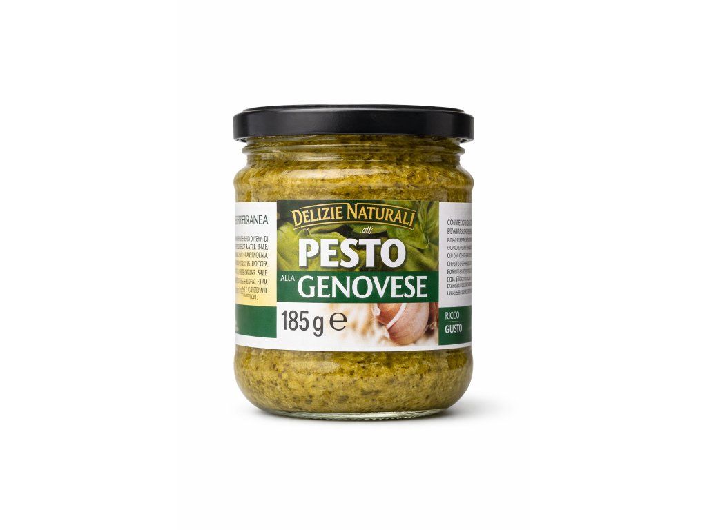 Pesto alla Genovese od Delizie Naturali je klasická italská omáčka inspirovaná recepturou z oblasti Ligurie. Má výraznou bazalkovou chuť doplněnou jemnou krémovou konzistencí, která perfektně obalí těstoviny.