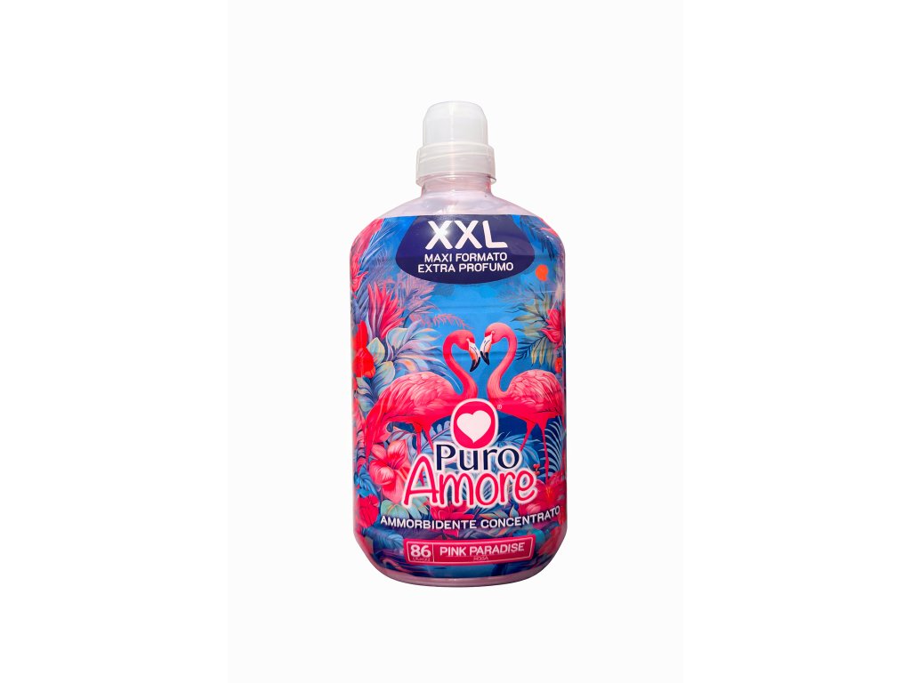 Puro Amore Pink Paradise 1,8 l je koncentrovaná aviváž s velmi intenzivní a dlouhotrvající vůní, která kombinuje exotické květiny a lehký ovocný tón. Díky speciální formule změkčuje prádlo, usnadňuje žehlení a zanechává vlákna jemnější při každém praní.