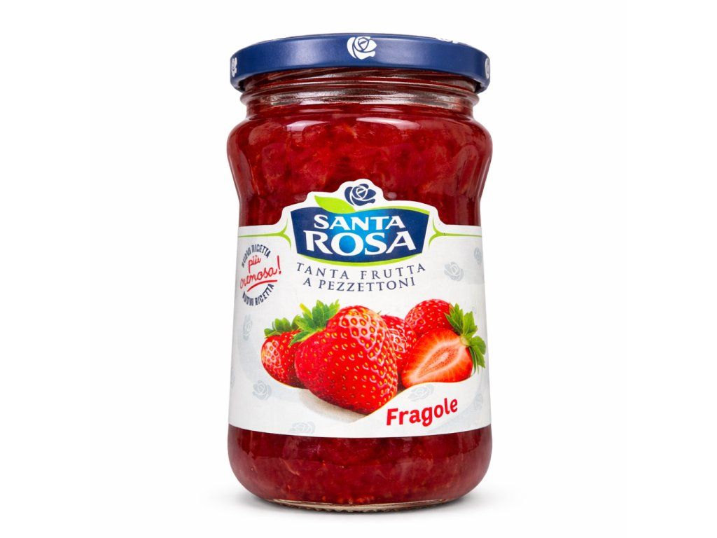 Santa Rosa Fragole je tradiční italský jahodový džem s obsahem kousků ovoce (Tanta Frutta a Pezzettoni). Vyniká plnou chutí zralých jahod a přirozenou sladkostí.