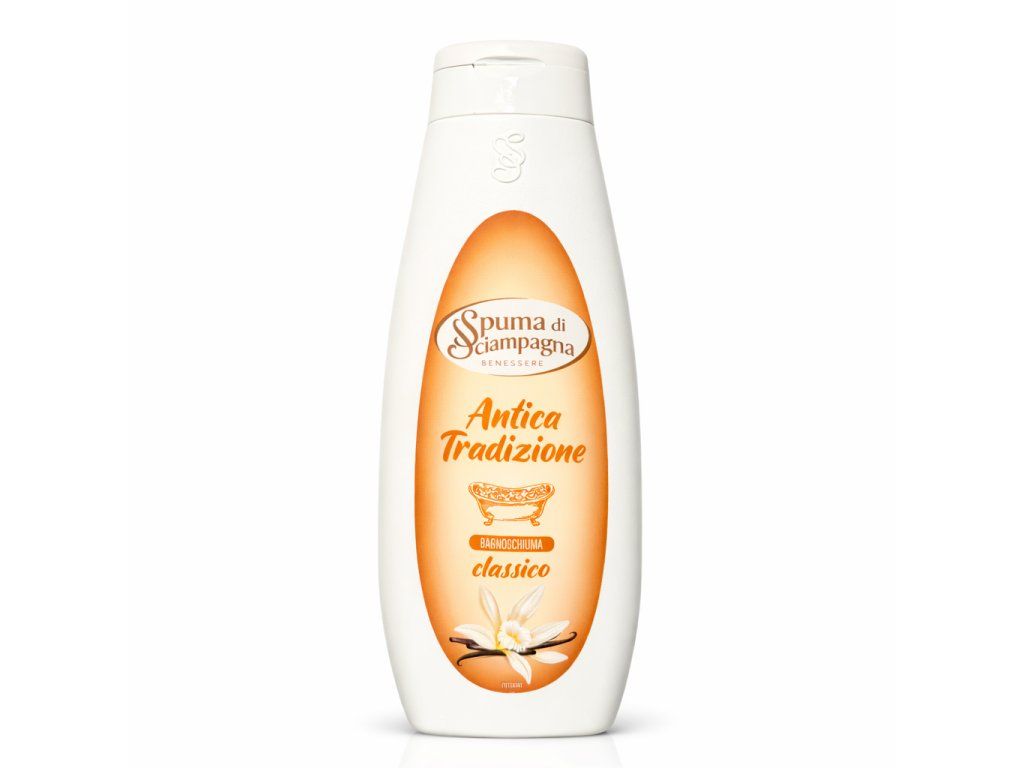 Spuma di Sciampagna Antica Tradizione Bagnoschiuma Classico je tradiční italská koupelová pěna vhodná pro každodenní použití. Jemné složení šetrně čistí pokožku, vytváří bohatou pěnu a zanechává příjemnou klasickou vůni. Ideální pro relaxační koupel i sprchování.