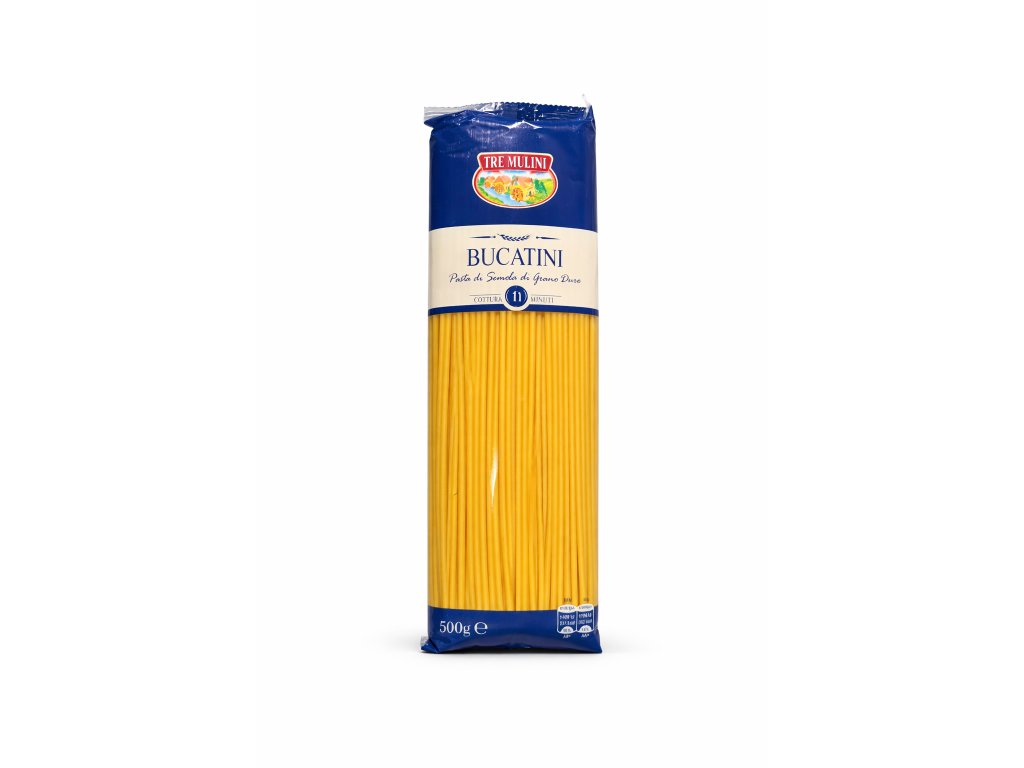 Tre Mulini Bucatini jsou pravé italské těstoviny vyrobené z kvalitní semolinové mouky z tvrdozrnné pšenice. Díky svému dutému tvaru perfektně drží omáčku a vytváří autentický italský gastronomický zážitek.