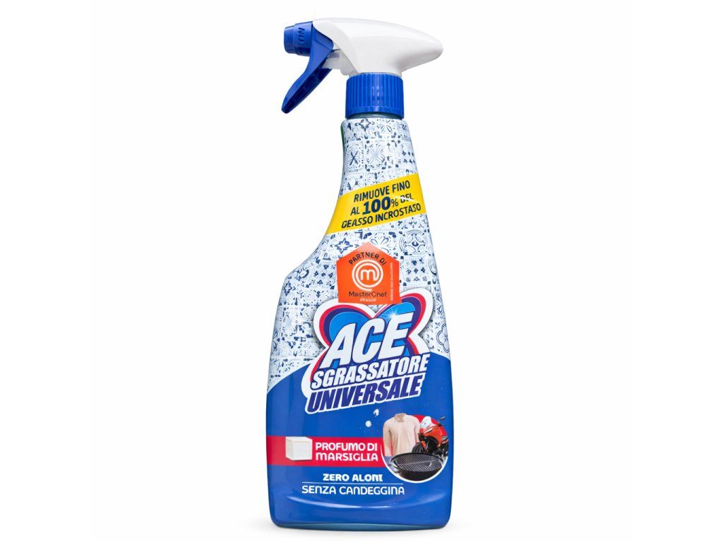 ACE Sgrassatore Universale je vysoce účinný univerzální odmašťovač určený pro rychlé a snadné odstranění mastnoty, připálenin a odolných nečistot. Díky své silné čisticí formulaci dokáže odstranit až 100 % usazené mastnoty a zanechává povrchy dokonale čisté.